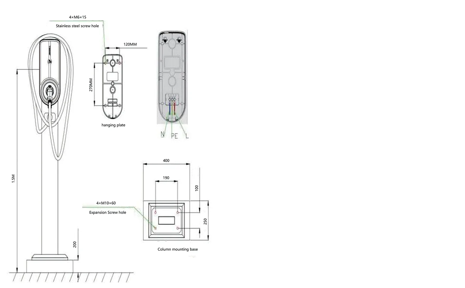 - Η συσκευή ακολουθεί αυστηρά τις αρχές σπονδυλωτής σχεδίασης: η μονάδα επικοινωνίας είναι plug-and-play, συμβατή με μονάδες Ethernet/GPRS/3G/4G, επιτρέποντας στους χρήστες να επιλέγουν σύμφωνα με τις πραγματικές ανάγκες. η κατασκευή είναι συμβατή τόσο με τις μεθόδους τοποθέτησης σε τοίχο όσο και με επιδαπέδια. Ένας επιτοίχιος πάσσαλος φόρτισης μπορεί να μετατραπεί σε επιδαπέδια εγκατάσταση προσθέτοντας έναν στύλο χωρίς να τροποποιήσετε τη δομή του ή να προσθέσετε άλλα αξεσουάρ.